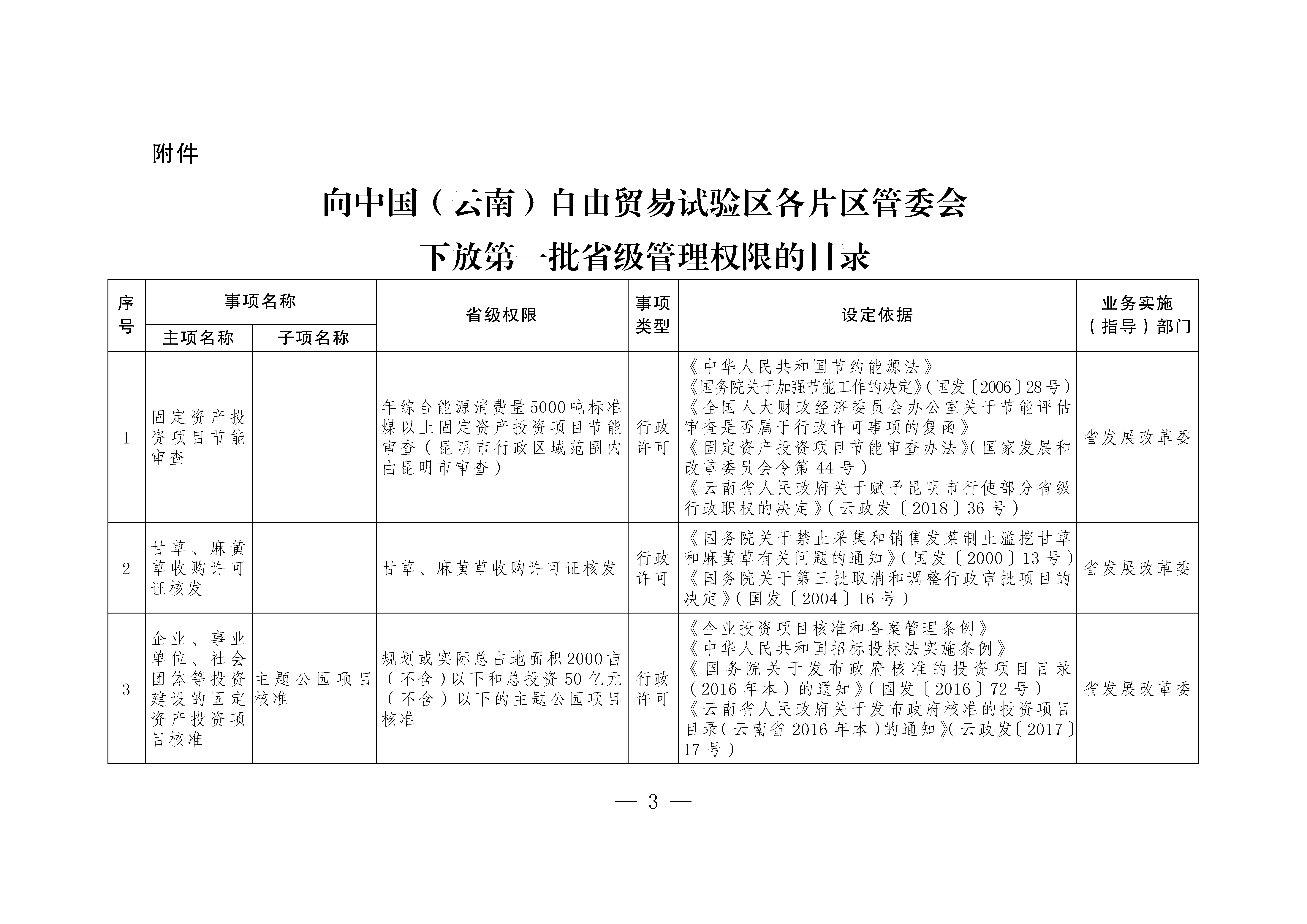 根據《國務院對于印發6個新設自在商業嘗試區整體計劃的告訴》(國發〔2019〕16號)和《國務院對于贊成新設6個自在商業嘗試區的批復》(國函〔2019〕72號)精力,省國民當局研討決議,向中國(云南)自在商業嘗試區(以下簡稱云南自貿嘗試區)昆明、紅河、德宏片區管委會下放第一批省級行政權利事變73項,此中行政允許事變55項,行政確認事變2項,其余行政權利事變16項。
