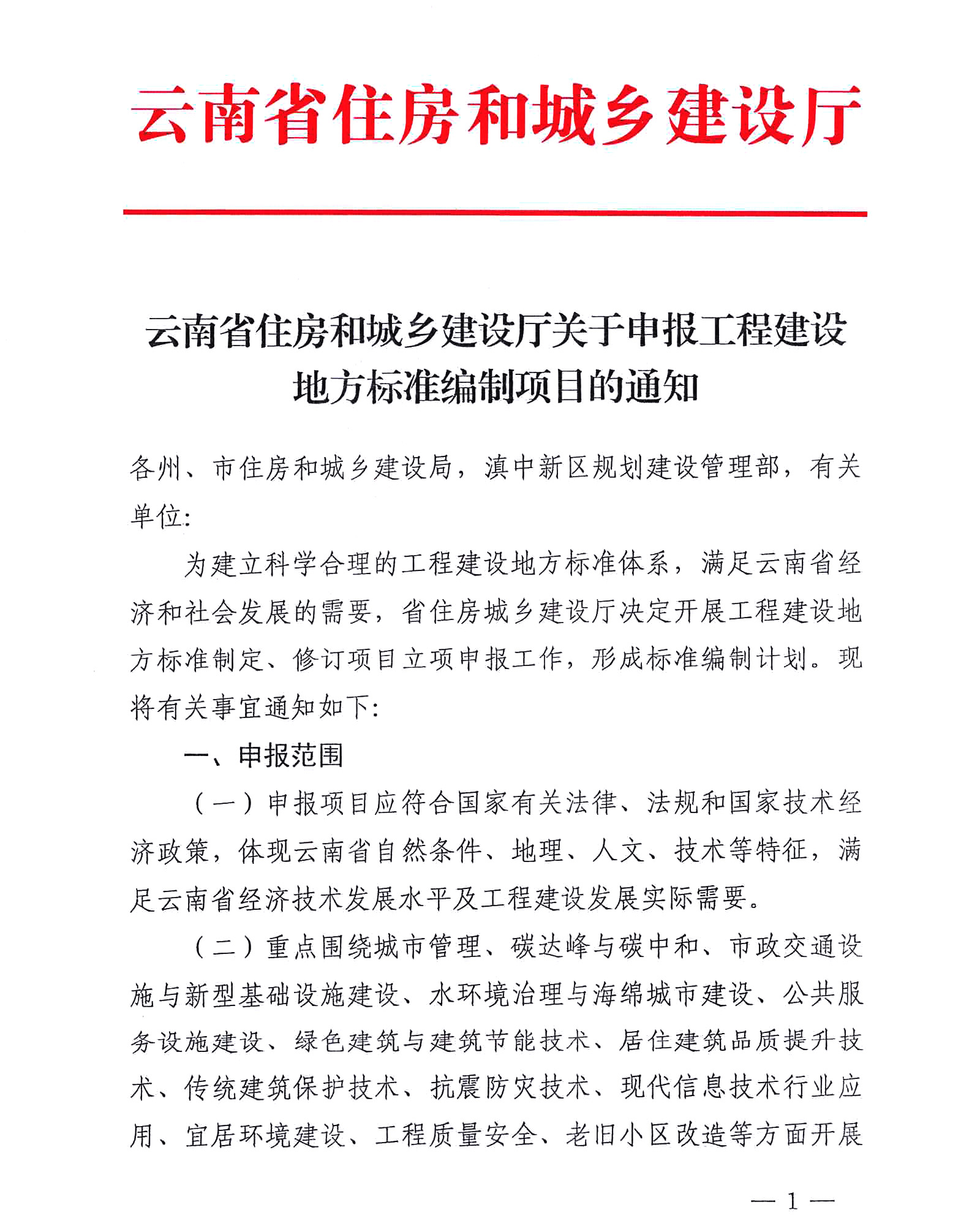 云南省住房和城鄉扶植廳對于報告工程扶植處所規范體例名目的告訴